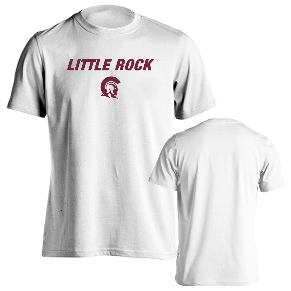 Wear this Little Rock Trojans Text School Name & Logo T-Shirt around campus in Little Rock, Arkansas or at home with Trojans pride!