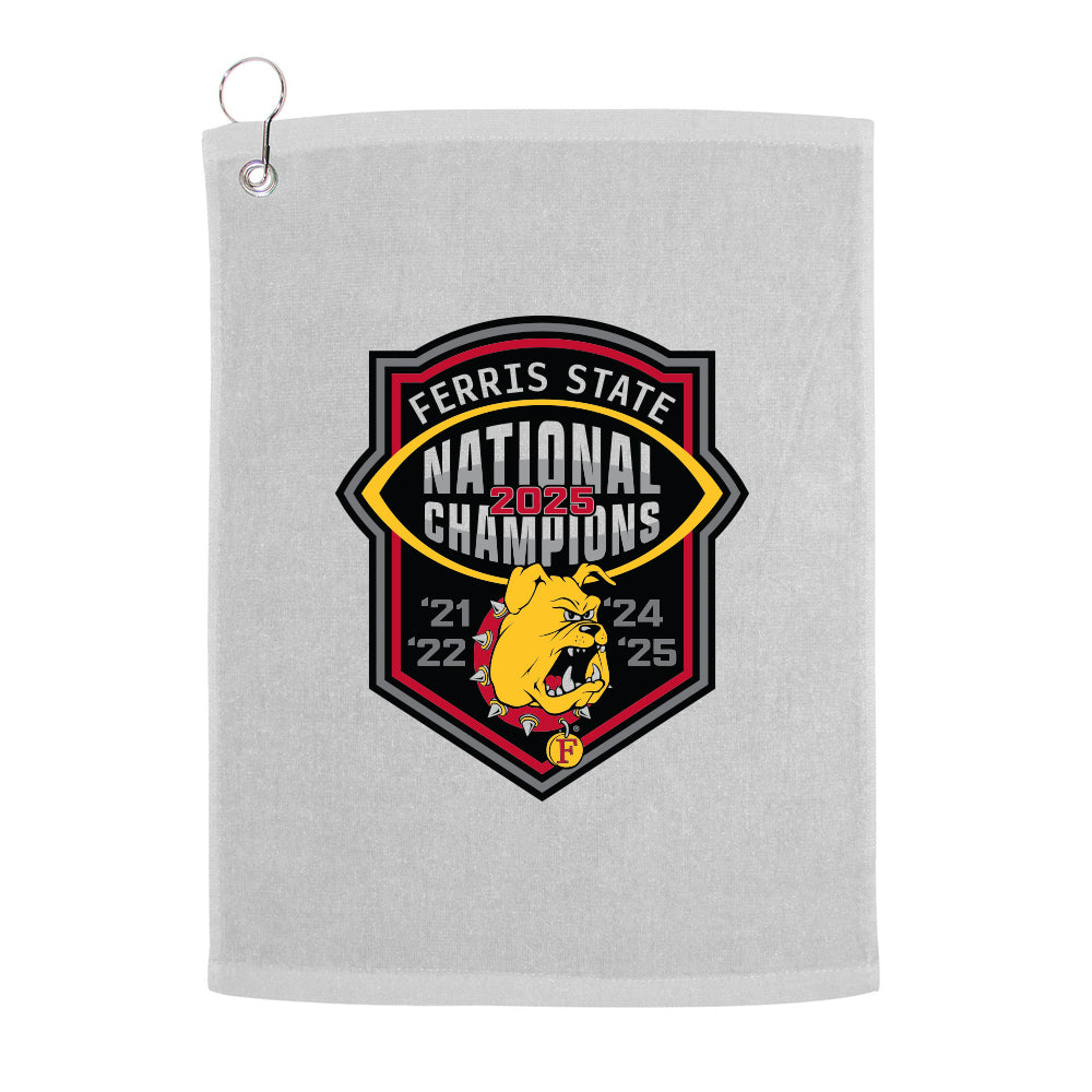 Take championship pride to the course with this 2025 DII Football National Champions Golf Towel, designed for fans who want Ferris State dominance represented beyond game day.
