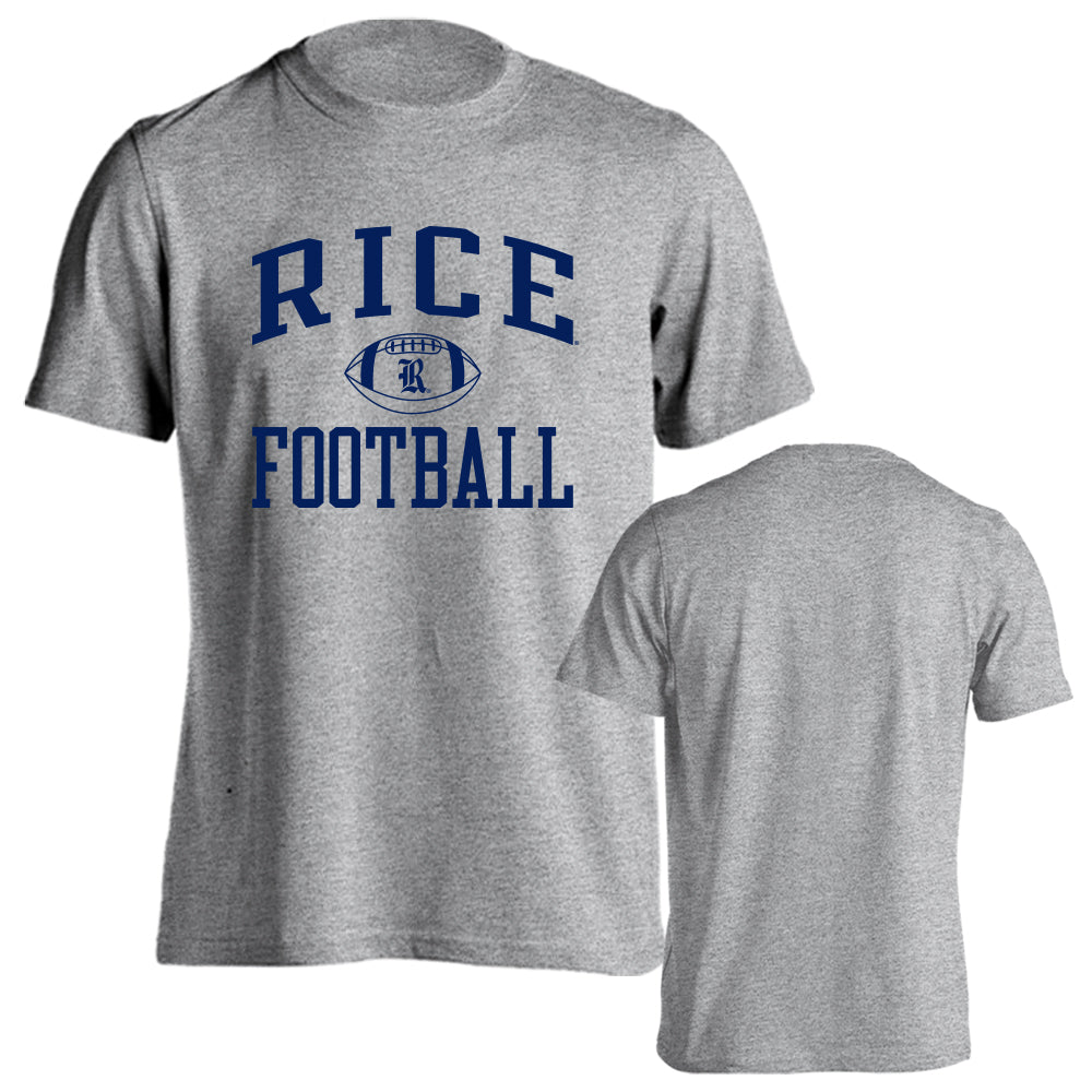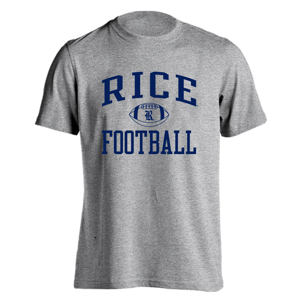 Show your Rice pride with the Sport Your Gear Rice Owls Football T-Shirt from the Game Day Traditions Collection. Featuring a bold football graphic and Rice wordmark, this tee delivers classic fan style with academic edge and on-field grit. Made from ringspun cotton or a cotton/poly blend (heathers), it offers breathable comfort and reliable durability — from Rice Stadium to the classroom or beyond.