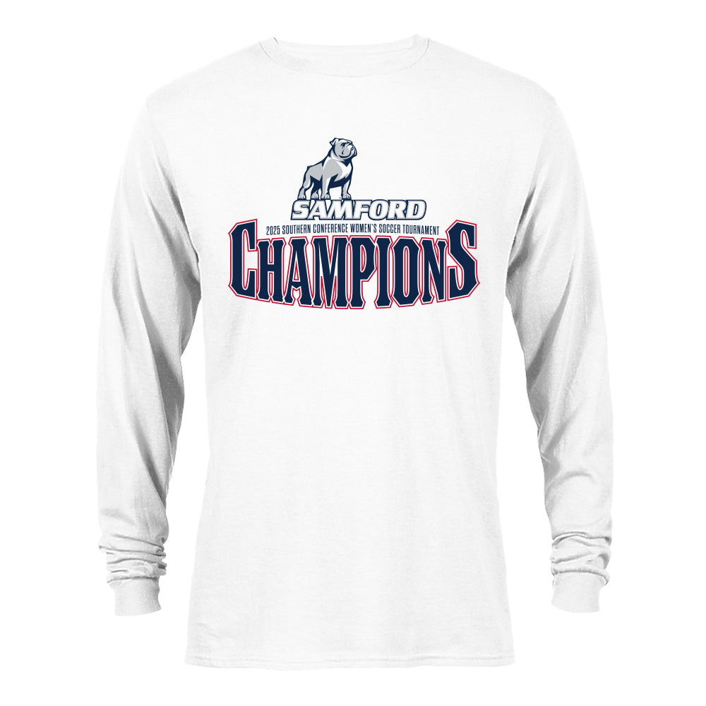 Celebrate the 2025 Southern Conference championship with the officially licensed Samford Bulldogs Women's Soccer long sleeve t-shirt. Made of 100% cotton, it's comfortable and perfect for showing off your team pride. Congrats Bulldogs!