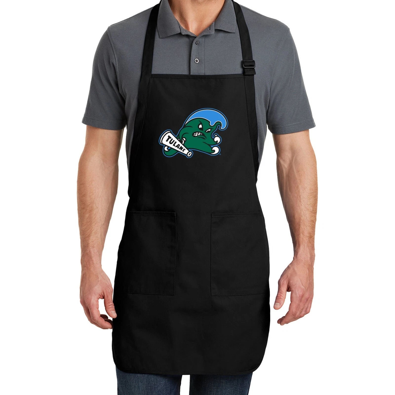 This Tulane Green Wave grilling apron with mascot logo will no doubt be your go-to apron whenever you are in the kitchen
