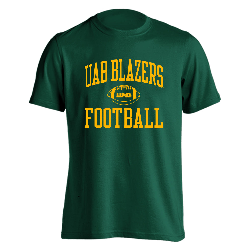 Get game day ready with the University of Alabama at Birmingham Blazers Football T-Shirt, part of our Game Day Traditions Collection celebrating timeless school pride. This short sleeve fan favorite features a bold front football graphic paired with UAB’s team name—perfect for students, alumni, and fans alike. Made from soft ringspun cotton or a cotton/poly blend (heather colors), it’s breathable and built for all-day wear at the game, on campus, or out in town. Officially licensed with true team colors and durable stitching, it’s the kind of shirt you’ll wear season after season. From tailgates to trophies, it’s UAB pride you can wear.