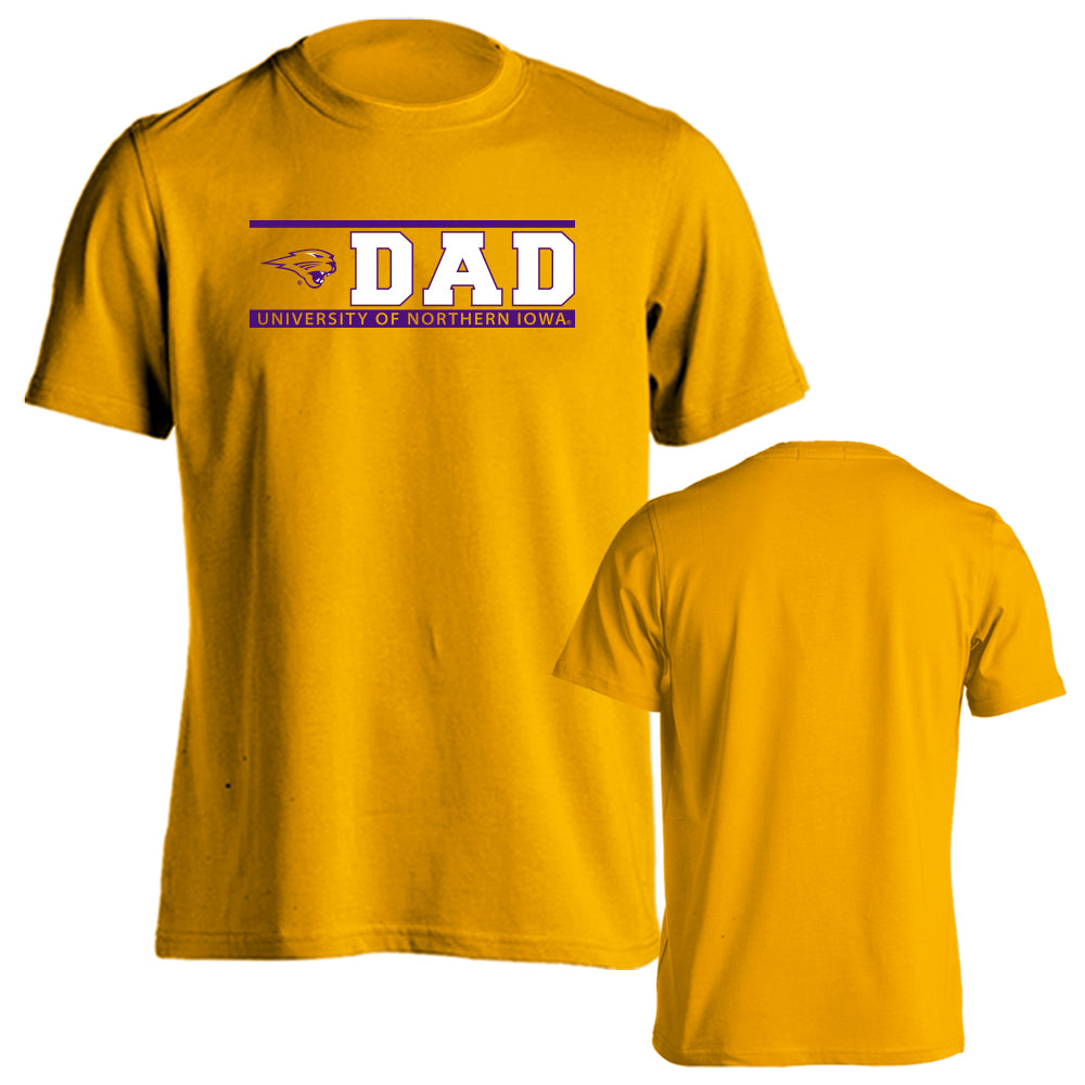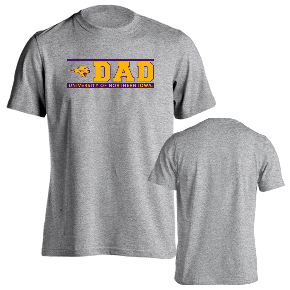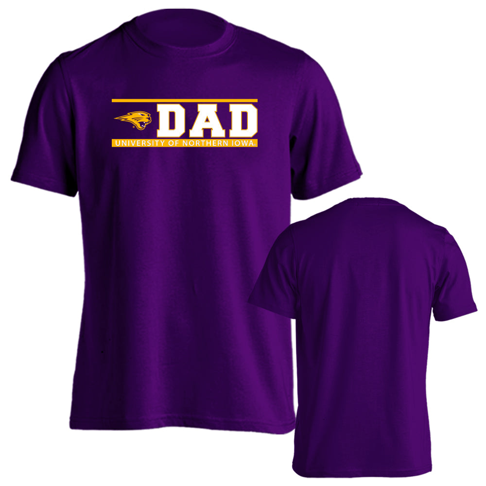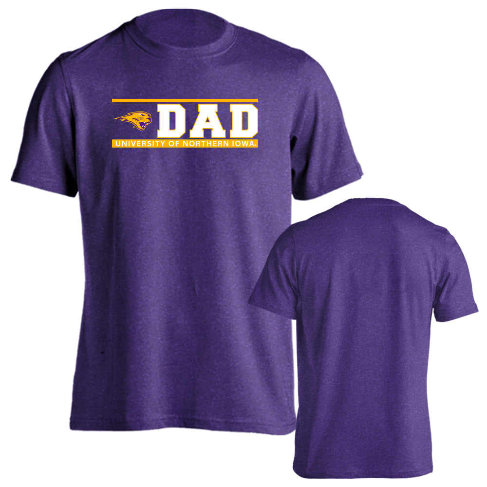 Wear this Northern Iowa Panthers Dad T-Shirt around campus in Cedar Falls, Iowa, or at home with Panthers pride!